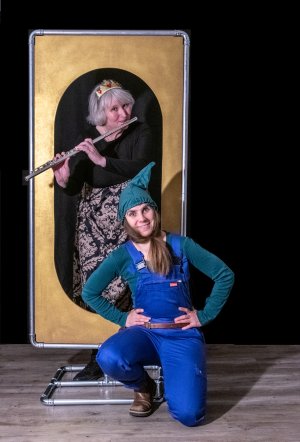 Ein einsamer Zwerg sitzt auf einem Berg und strickt und stickt und strickt… Plötzlich wird sein Leben sinnvoll, da er der Müllerstochter helfen kann. Immer mehr merkt er, dass das Materielle ihn nicht mehr interessiert. Auch der Spiegel der Wahrheit und das Tor zwischen den verschiedenen Welten werden immer wichtiger. Erschafft mit uns interaktiv eine Fantasievolle Märchenwelt mit Musik, in der aus Rumpelstilzchen der siebente Zwerg von Schneewittchen wird. Die Schauspielerin Bianka Elberfeld schrieb die zwei Märchen so um, dass sie aus der Sicht des Zwerges erlebt werden und verkörpert alle Rollen selbst. Christine Hildebrand untermalt stimmungsvoll die Abenteuer mit musikalischen Ideen aus unterschiedlichen Zeitepochen. 90 Minuten Musiktheater (mit Pause) für Kinder ab 4 Jahren