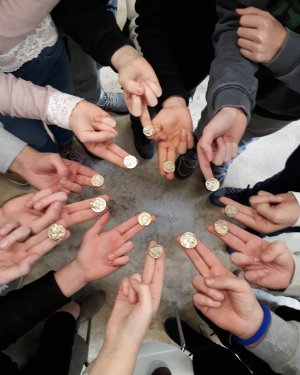 Beim Münzgießen wird die Schulklasse in zwei Gruppen unterteilt. Die erste Gruppe beginnt mit der Münzenherstellung im Sandgussverfahren, während die andere Gruppe eine altersgerechte Führung und Rallye im „Stolberger Gold“ macht. Der Themenschwerpunkt liegt hierbei auf der Bedeutung des Messings für die (Gelb)Kupferstadt Stolberg. Nach einer kurzen Pause wird gewechselt, sodass am Ende jede/r eine selbstgemachte Messingmünze in Händen hält.